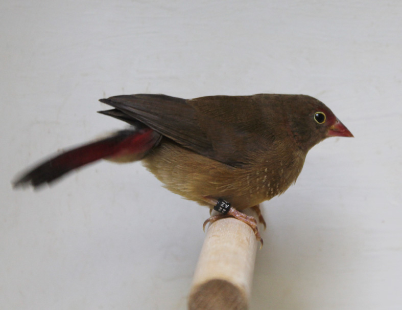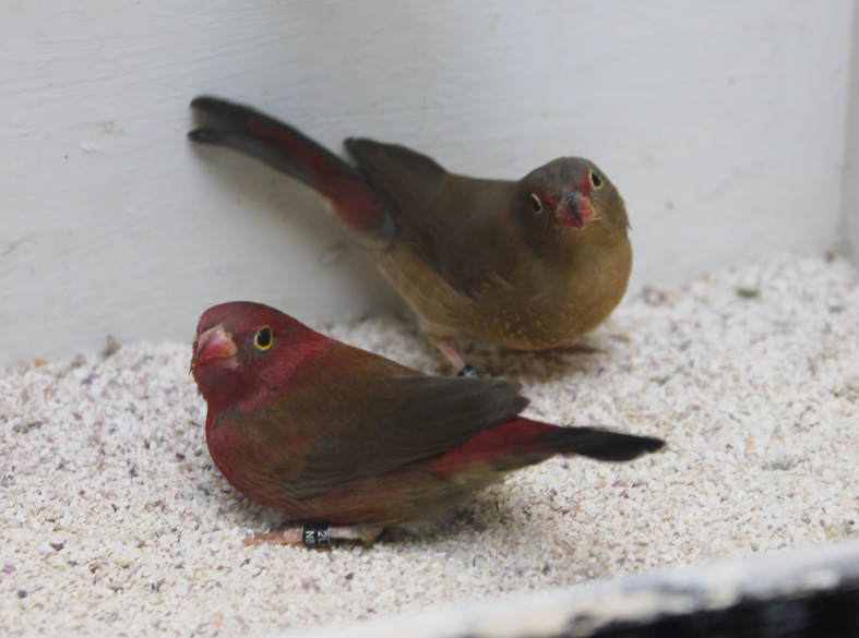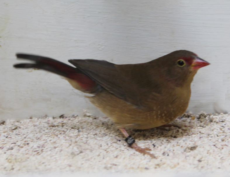 In passato ho allevato questo piccolo estrildide. Molto docile e calmo si riproduce anche in piccole gabbie, tuttavia raramente alleva la prole ed è quindi consigliabile l’utilizzo di balie. Il dimorfismo sessuale è molto evidente in quanto il maschio presenta un piumaggio completamente rosso.