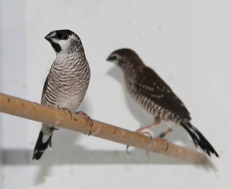 In passato ho allevato con successo questo piccolo estrildide australiano. Molto docile e calmo si riproduce anche in piccole gabbie, tuttavia raramente alleva la prole è quindi consigliabile l’utilizzo di balie. Il dimorfismo sessuale è molto evidente in quanto il maschio presenta una piccola bavetta sotto il becco ed il disegno della calotta cranica più esteso e carico di colore.