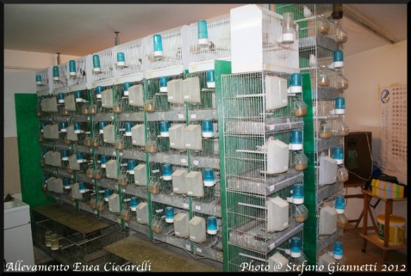 Il mondo dell’ornitologia è fatto di tanti amici, purtroppo gli incontri sono sempre meno frequenti perché non tutti abitiamo vicini, l’Italia è lunga e le trasferte e gli incontri per i più distanti si racchiudono come sempre nel periodo autunnale in occasione delle mostre ornitologiche. Il più delle volte anche in quelle poche occasioni gli incontri sono tanti ed il tempo a disposizione sempre poco, e quasi sempre ci si congeda con un “la prossima volta speriamo di poter avere più tempo per chiacchierare”. Conosco Enea Ciccarelli da poco tempo, in occasione di una delle recenti edizioni di Zebra’s e fin dal primo giorno, abbiamo stretto un rapporto di amicizia che va oltre l’ambito ornitologico, anche se il più delle volte sempre di mandarini e passeri si torna a parlare! Negli ultimi due anni ha organizzato delle bellissime giornate, in visita agli allevamenti sulla costa adriatica, e sin dalla prima volta mi offri la sua ospitalità. Tra un impegno ed un altro ho sempre rimandato l’invito, ma l’occasione propizia è arrivata verso la metà di ottobre, approfittandone per poter far incontrare anche le nostre famiglie. Il nostro hobby spesso è poco vissuto dalle nostre famiglie e poco facciamo a volte per coinvolgerle, sempre a causa del poco tempo a disposizione. Abbiamo preso accordi più precisi in occasione della mostra di Faenza, ed una volta stabilito gli ultimi dettagli, mi ha invitato a passare da lui il primo week-end di novembre. L’occasione è stata colta al balzo, sia per poter fare, finalmente un bel servizio fotografico ai suoi splendidi uccelli, ma soprattutto per poter passare insieme un po’ di tempo, senza la fretta di sgabbiare, di tornare a casa. Insomma grazie alla sua ospitalità si è prospettato un bel fine settimana da trascorrere insieme! Partiti di primo pomeriggio, abbiamo ripercorso le strade fatte nelle precedenti visite, ci hanno accompagnato i colori autunnali, che a perdita d’occhio dipingevano le montagne abruzzesi prima e marchigiane dopo. Arrivati in serata Enea ci attendeva, con la piccola Cloe, “al solito posto”, un saluto frettoloso e via verso casa dei suoi genitori. Arrivati a casa abbiamo ricevuto un’accoglienza calorosa da mamma Adriana e papà Ferdinando, una volta accomodati la prima cosa che ci ha colpito, anche perché la prima di tante cose che abbiamo ammirato, è stata la grande collezione di fossili e minerali che faceva bella mostra nell’ingresso di casa, da restare bocca aperta ad ammirarla, Lorenzo non voleva staccarsi da quelle vetrinette, mentre Ferdinando ci mostrava con orgoglio questo o quel pezzo della collezione. Adriana in cucina stava ultimando i preparativi per la cena, qualcosa mi diceva che sarebbero state due giornate all’insegna della buona cucina. Giulia ha subito fatto amicizia con Cloe, le bambine hanno subito diretto la loro attenzione sulle bambole; dopo qualche minuto è arrivata Tania, la moglie di Enea, e così le presentazioni di rito si erano concluse, e pian piano abbiamo cominciato a raccontare le nostre avventure ornitologiche, io ed Enea già sapevamo di cosa parlare ma ben presto l’attenzione si è diretta verso altri argomenti che pian piano hanno coinvolto tutti i presenti. Così abbiamo potuto apprezzare altre passioni di Ferdinando, dalla scultura alle piante grasse, al passato da atleta, tutta casa era abbellita da trofei, ritratti e sculture, medaglie e fotografie. Abbiamo potuto ammirare alcune delle sculture di Enea, perché ha saputo seguire le orme del padre e prendere e perseguire quello che per Ferdinando era ed è una passione, per farla diventare una scelta di vita ed orientare così gli studi verso le belle arti. Pian piano io ed Enea ci siamo resi conto che eravamo rimasti a parlare solo io e lui tra di noi, Emanuela e Tania, già stavano organizzandosi per il giorno dopo, in giro per Civitanova, e sapendo che la zona è una tra le più rinomate in Italia nel settore della calzatura d’alta qualità, avevo dei strani presentimenti. La serata è passata veloce e la compagnia è stata sempre gradevole e ci avvolgeva sempre più in un clima familiare!