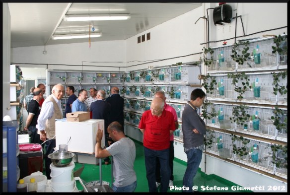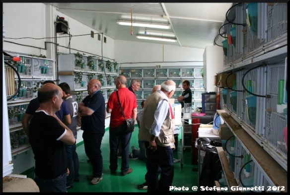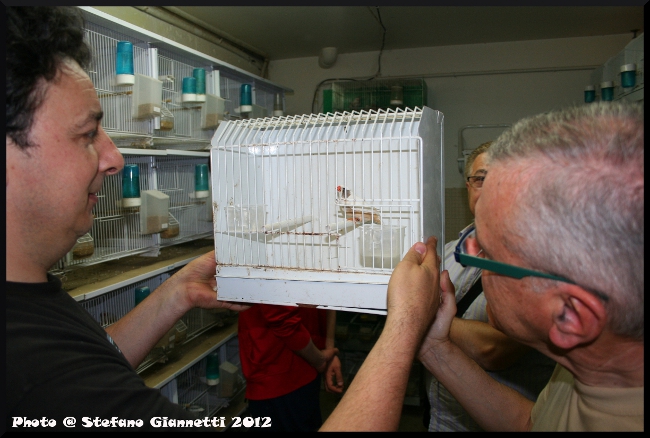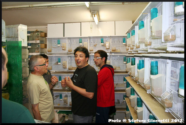 Alcune coppie erano ancora in riproduzione, gli ultimi scorci di una stagione riproduttiva davvero unica, 350 novelli ottenuti, a quel livello di selezione non sono una cosa comune. Purtroppo il tempo stringeva da lì ad un mezzoretta dovevamo trovarci da Giorgio, così rapidamente il buon Enea mi ha omaggiato della coppia di passeri che gli avevo chiesto (un Grigio Perla ed una Bruna Perla/Grigio). Con un po’ di amaro in bocca, per il poco tempo dedicato, abbiamo lasciato il locale, e ci siamo diretti, attraversando una trafficata Civitanova, verso il centro a casa di Giorgio. Arrivati oltre ai saluti di rito e le presentazioni, conoscevo solamente Gianni e Roberto, abbiamo chiesto, nonostante il ritardo, di farci fare una breve visita all’allevamento, come poter fare visita al buon Giorgio e non ammirare a bocca aperta i suoi locali.