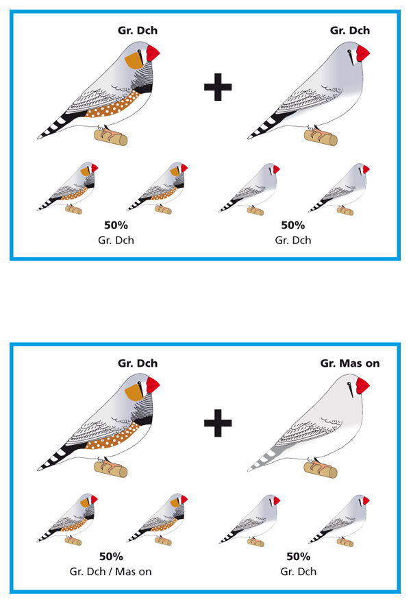 Una delle caratteristiche principali di questa mutazione è l’evidente stacco di colore fra testa e dorso richiesto dallo standard, per aumentare questo stacco spesso i grigio dorso chiaro vengono tagliati con dei grigio mascherato occhio nero, se si possiedono sogetti con buone caratteristiche si possono accoppiare in purezza.