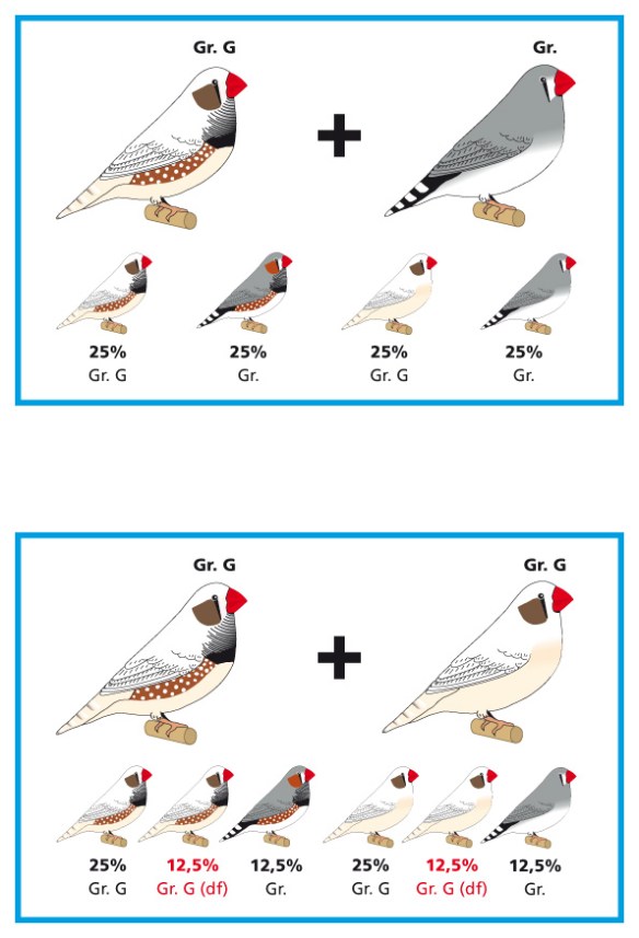 L’accoppiamento è quasi obbligato trattandosi di mutazione dominante, quindi grigio guancia x grigio o viceversa. Bisogna segnalare però che alcuni allevatori affermano che accoppiando guancia x guancia è possibile ottenere dei guancia a doppio fattore, per altri allevatori invece il doppio fattore è letale come nelle altre mutazioni dominanti del diamante mandarino.