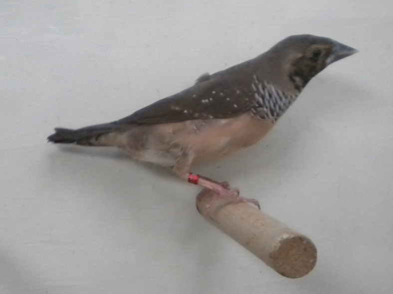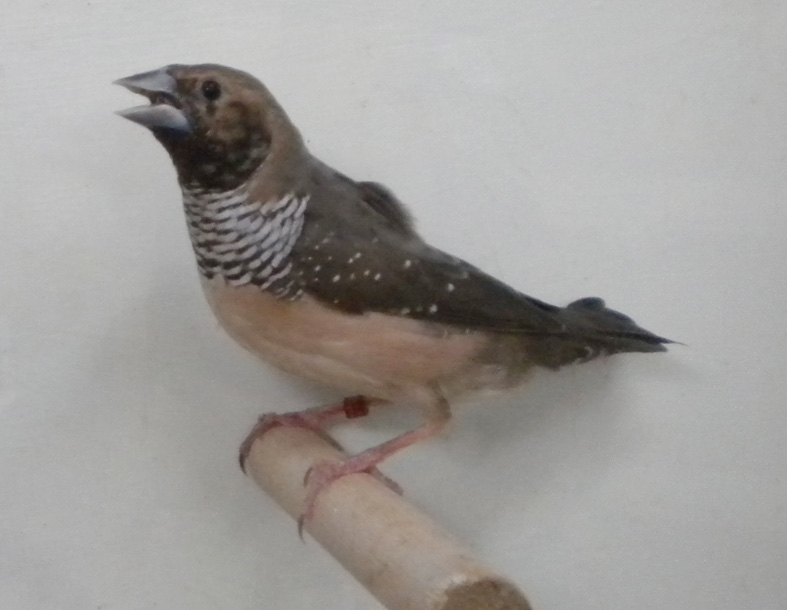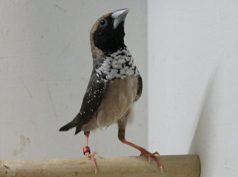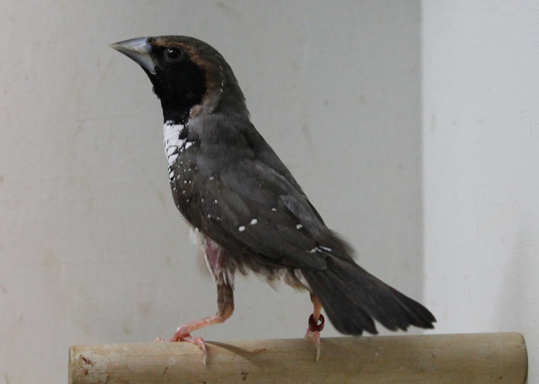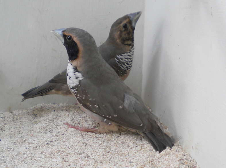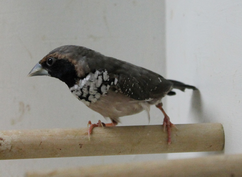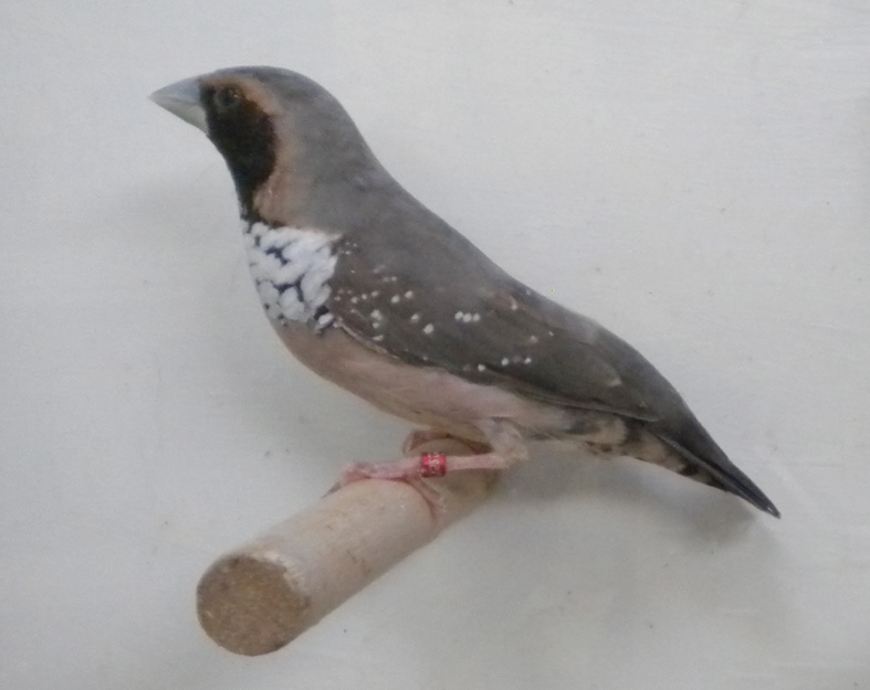 Allevo da alcuni anni anche questa splendida lonchura. Molto docile e calmo si riproduce anche in piccole gabbie e con i dovuti accorgimenti alleva la propria prole in purezza. Il dimorfismo sessuale è evidente il maschio presenta una maschera facciale più estesa ed intensa ed il disegno del petto quasi completamente bianco.