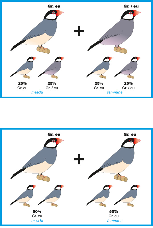 L’accoppiamento migliore è grigio eumo x grigio portatore di eumo o viceversa utilizzando sempre dei portatori. Una volta raggiunta una buona taglia si possono accoppiare gli eumo anche fra loro per poter così selezionare il colore ottimale.