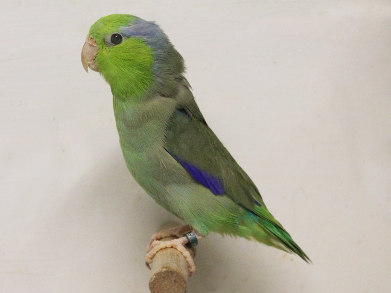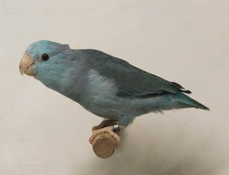 Il Forpus coelestis è molto docile e calmo si riproduce anche in piccole gabbie senza alcun problema. Il dimorfismo sessuale è evidente in quanto il maschio presenta disegni diversi dalla femmina.