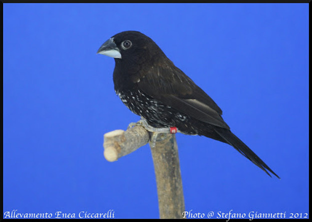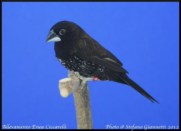 L’eumelanismo è molto comune nei passeri del Giappone, questo fenomeno è dovuto a volte a fattori ambientali ed alimentari, in Asia invece sono stati selezionati dei passeri del Giappone eumelanici privi di disegno ventrale ed è quindi stata fissata da anni questa nuova mutazione. È quindi per noi molto difficile capire ogni qual volta ci si presenti un soggetto simile alla foto sopra capire se si tratti di una mutazione vera e propria, l’eumo appunto, o si tratti di un aberrazione genetica dovuta a cause ambientali.