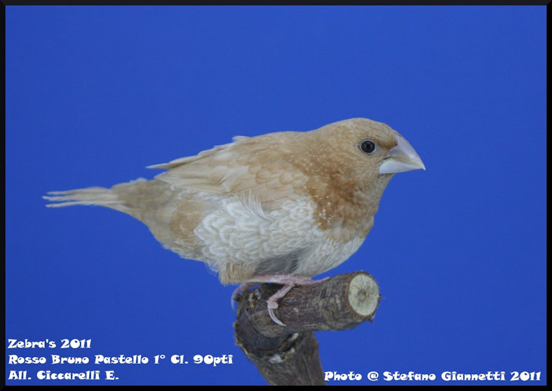 La mutazione pastello è recessiva quindi il nome attribuito a questa mutazione è a mio avviso sbagliato e forviante. Bisogna inoltre dire che a livello C.O.M. la mutazione pastello è standardizzata solo nelle basi rosso bruno e moka bruno, quindi alle varie mostre è possibile espore solo rosso bruno pastello e moka bruno pastello. Tuttavia i nero bruno pastello pur non essendo esponibili possono essere utilizzati con successo per la selezione dei moka bruno pastello.