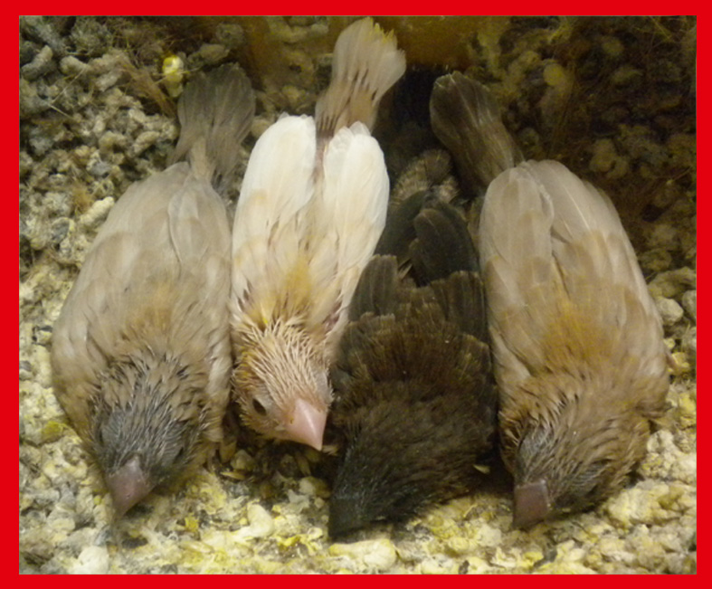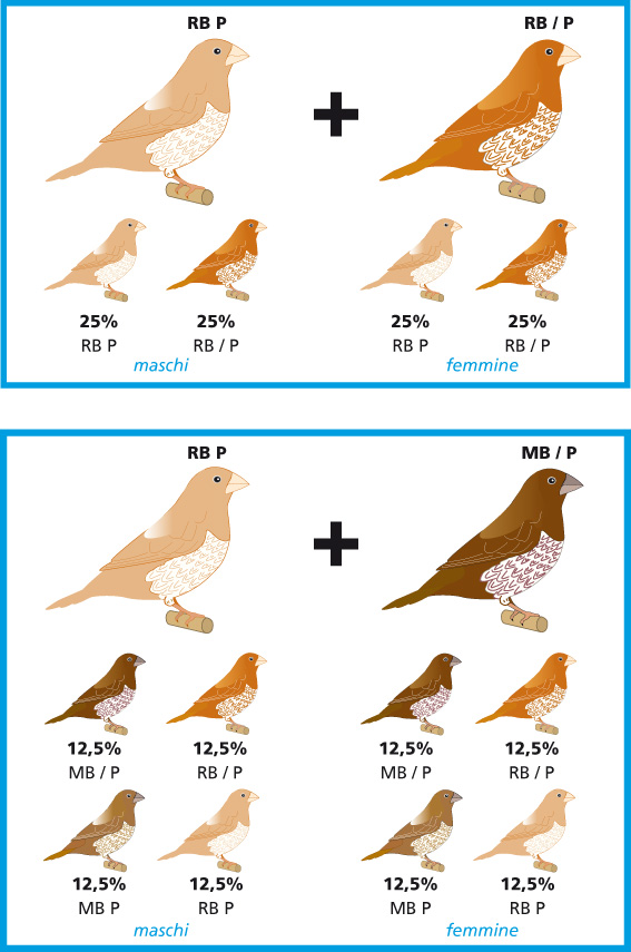 É bene inserire di tanto in tanto qualche soggetto moka bruno per caricare di intensità il colore rosso di base facendo bene attenzione a non selezionare soggetti intermedi tra moka e rosso bruno con becco e manto generale troppo scuro.